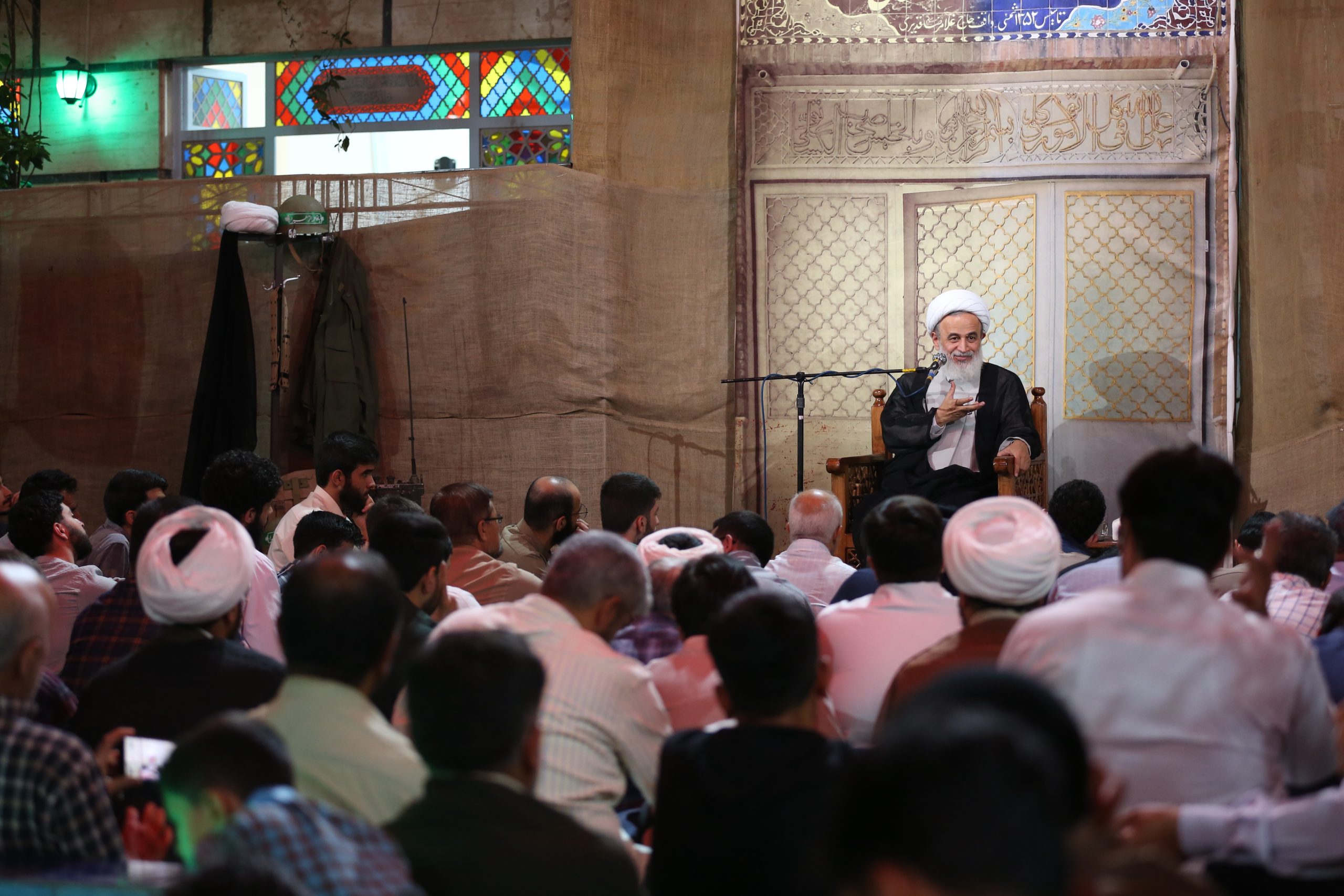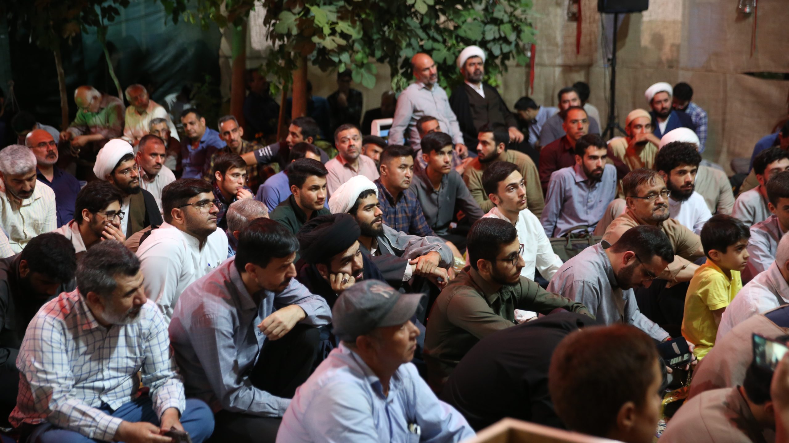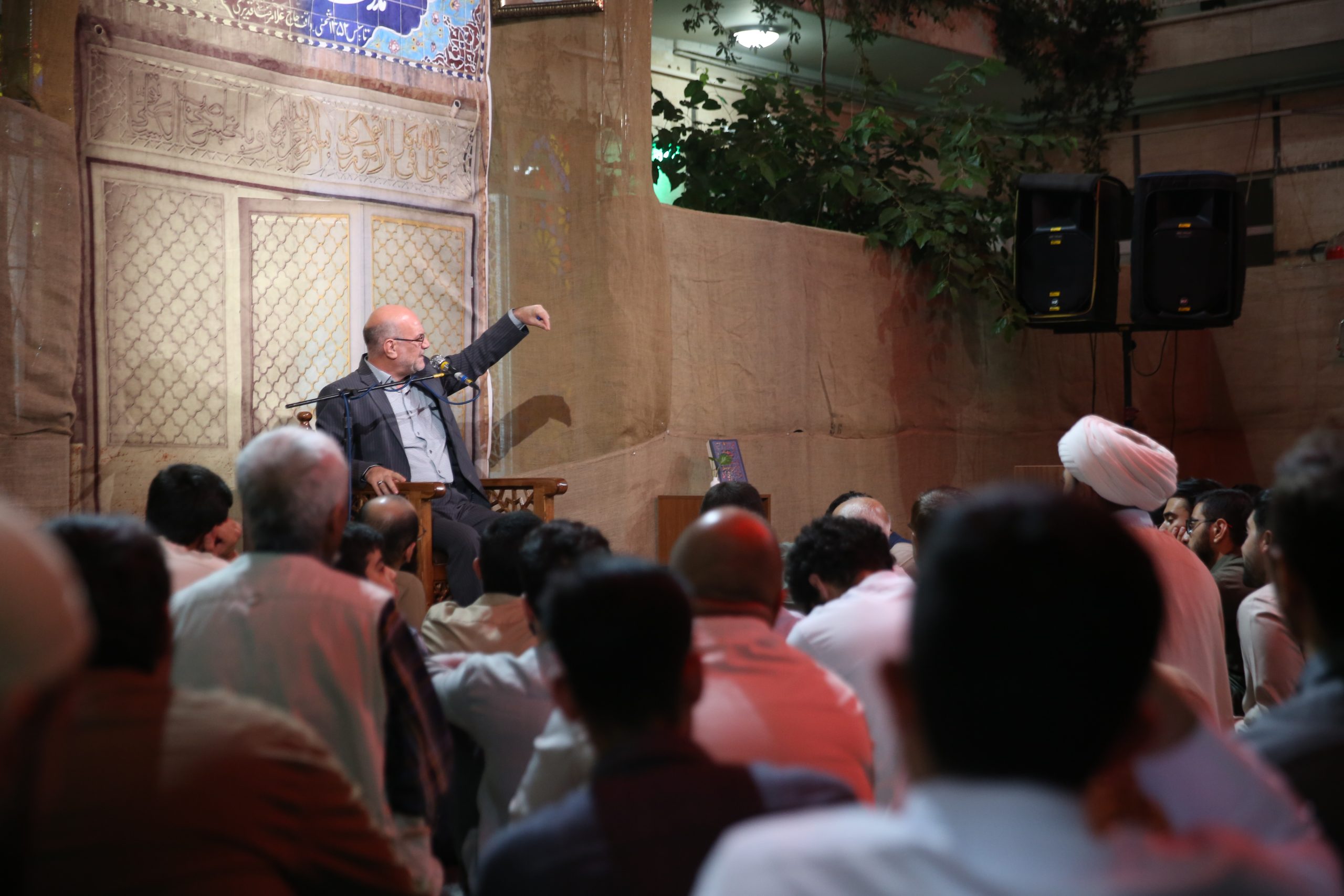 آماده سازی مراسم: نماز جماعت و تلاوت قرآن در حوالی مراسم(ایستگاه صلواتی و فروشگاه کتاب) اتاق کودک روایتگری حاج حسین کاجی سخنرانی حجت الاسلام پناهیان روضه و سینه زنی با نوای حاج ابوذر روحی عکس دست جمعی پایانی